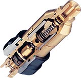 - interrupts the further gas flow on pressure shocks by a resettable pressure-sensitive cut-off valve (PV)