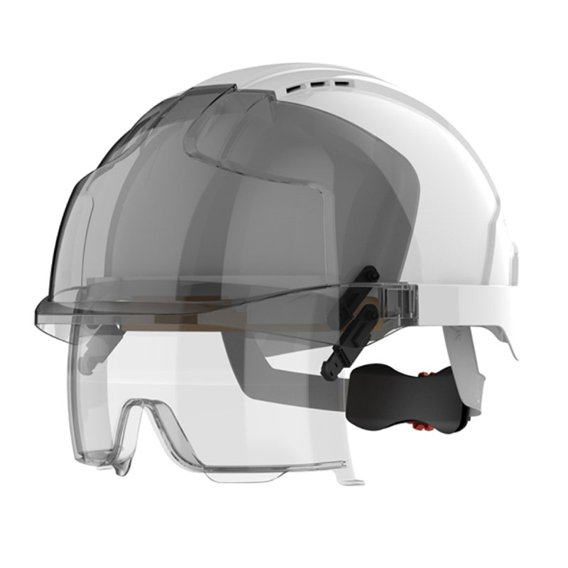 EVO® VISTAlens® is a next generation feature-rich safety helmet based on the proven Evolution® head protection technology. Incorporating a fully retractable optical class 1 integrated overspec. The eyewear is easy to deploy, adjust and maintain ensuring protection is on hand whenever it is required.
