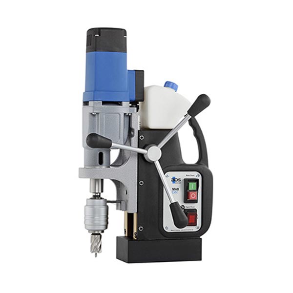 MAGNETIC DRILLING MACHINE BDS MAB 455 – The made in Germany, 40 mm dia. drilling with morse taper 2 heavy duty magnetic base drilling machine. Powerful & Reliable 10.5 Amp double-insulated motor, 17-1/4″ high, 29 lbs., High-speed, 2-speed oilbath gearbox, ideal for annular cutters and twist drills, Designed for continuous use, Intelligent electronic torque control, Drill up to 2″ dia., Uses annular cutters, Twist drilling up to 7/8″ diameter, Integrated cutting oil reservoir, Automatic internal lubrication, Swivel base (model MAB 455 SB), Keyless Cutter Mount, Quick-change keyless cutter system for 3/4″ Weldon shank, Integrated Safety, Green/Red LED magnetic force indicator for safe operation, Internal cable routing, Simple, ergonomic arrangement of controls for one-handed operation, Emergency-off function.
