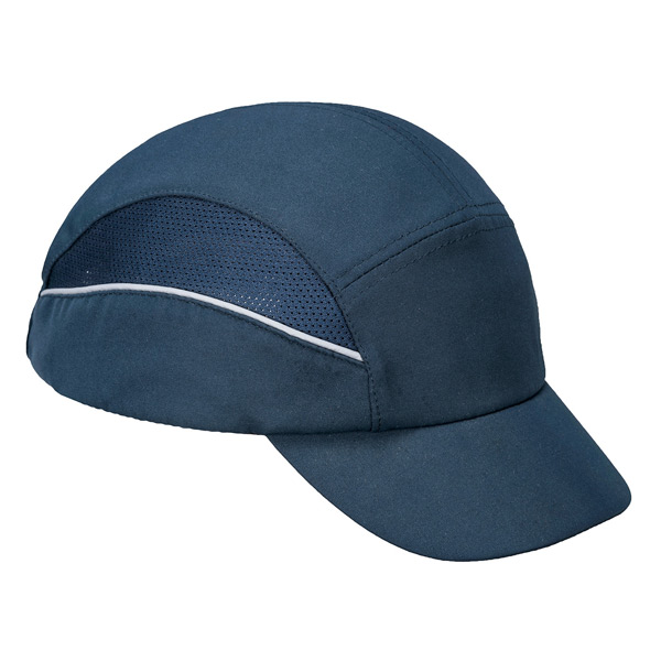 Innovative design Bump Cap. Maximised ventilation thanks to the side mesh and wide open windows on the inner shell. Modern textile design with reflective piping for better visibility. The mid-length peak makes this bump cap suitable for all uses. Buckle adjustable size.