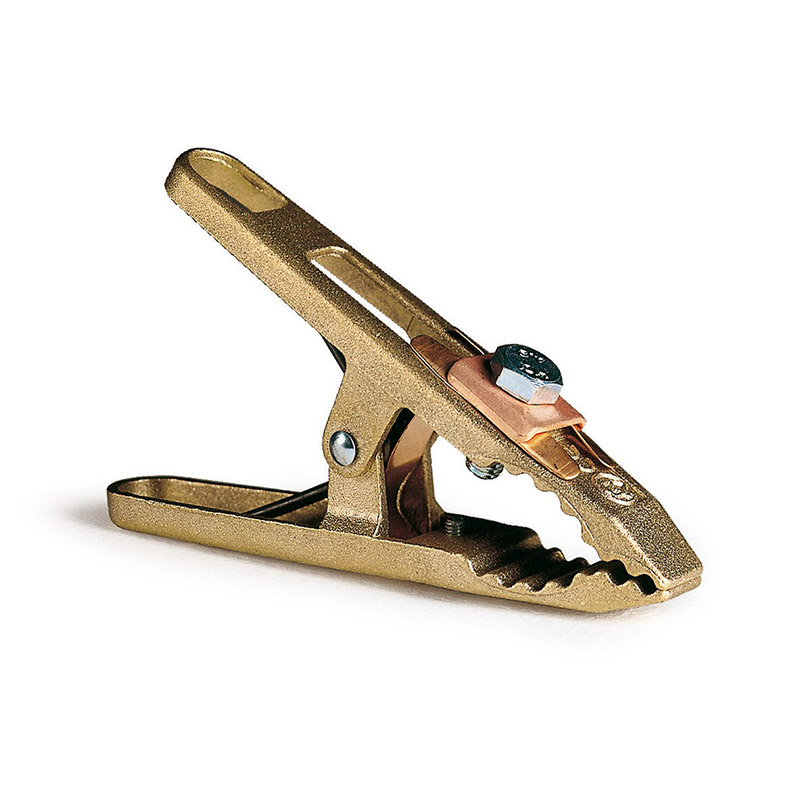 Die-cast brass ground clamp, equipped with copper shunt for guaranteed conductivity.