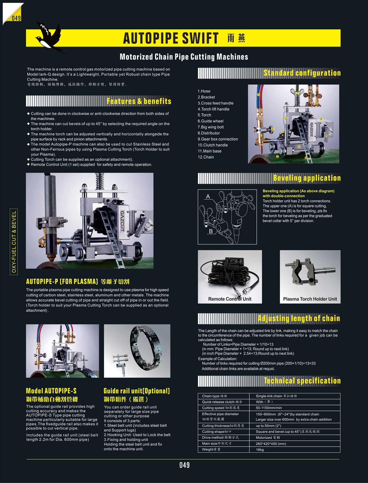 OXYGEN PIPE CUTTING MACHINE MANUAL 2.4m PNME HANDYPIPE-Q LARK