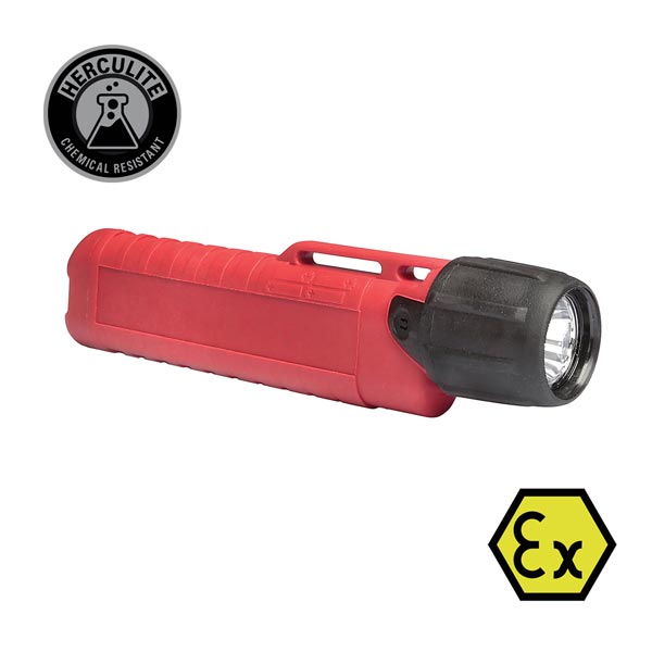 UNDERWATER KINETICS EXPLOSION-PROOF LIGHT ATEX HERCULITE ZONE 2 – The first release in our Chemical Resistant, Herculite Series, this powerful and compact light puts out an impressive 180 lumens for 8 hrs. and is designed to resist corrosion from many common chemicals.